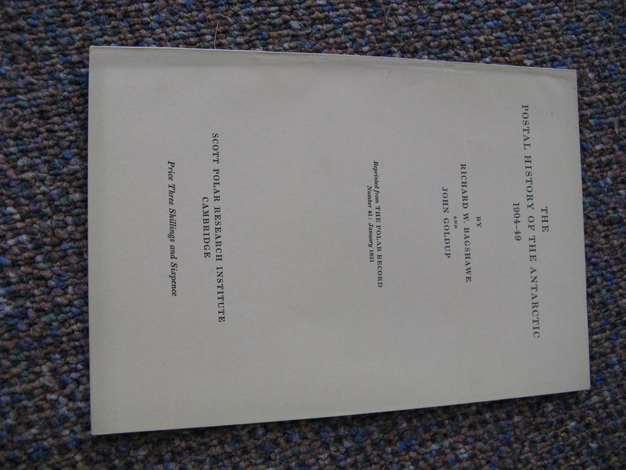 Author Bagshawe, Richard W and Goldup, J Title THE POSTAL HISTORY OF THE ANTARCTIC 1904 - 1949. Polar Record Vol6 Issue 41 January 1951,pages 45 to 79 Price £15.00 Full Details