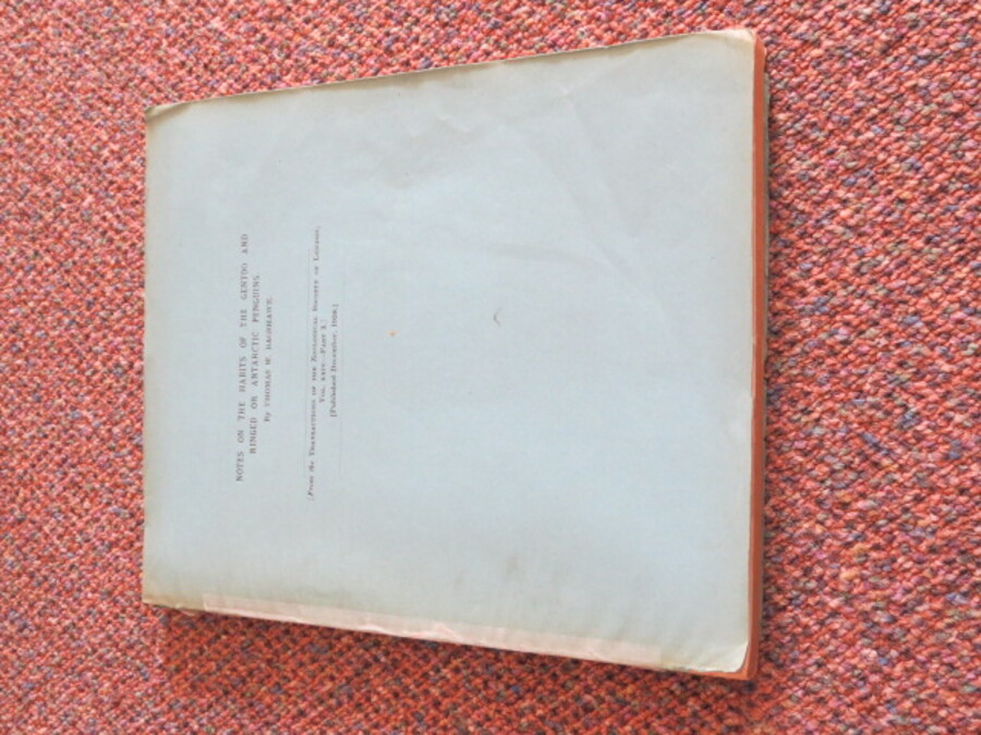 Author Bagshawe, Thomas Wyatt Title TRANSACTIONS OF THE ZOOLOGICAL SOCIETY OF LONDON - NOTES ON THE HABITS OF THE GENTOO AND RINGED OR ANTARCTIC PENGUINS, VOL XXIV PART 3, 1938. Price £100.00 Full Details
