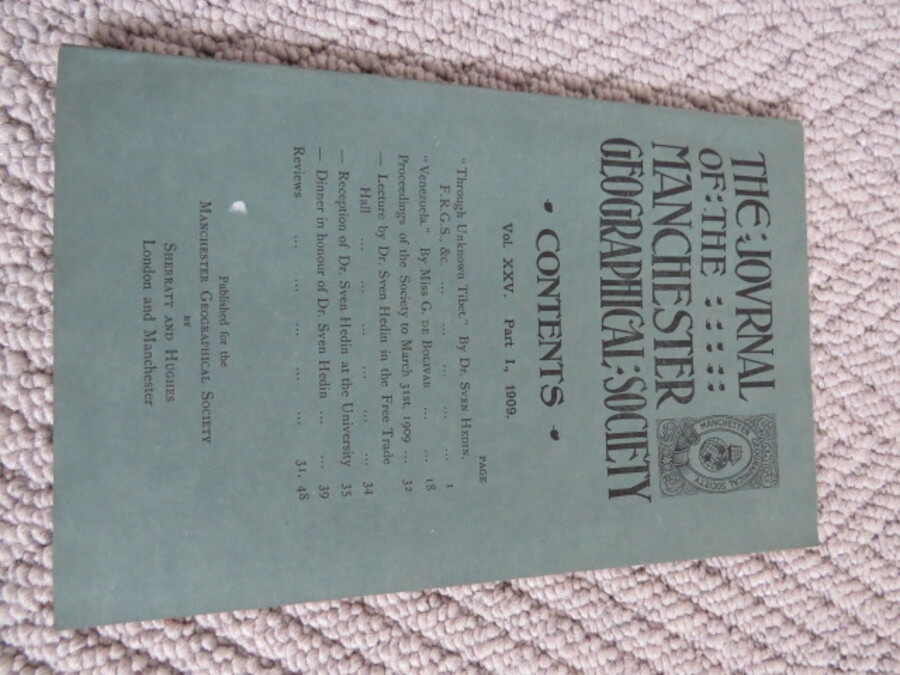 Author Various, Sven Hedin and others Title Journal of the Manchester Geographical Society: Vol XXV, Part 1, 1909. Price £5.00 Full Details Ref:4435