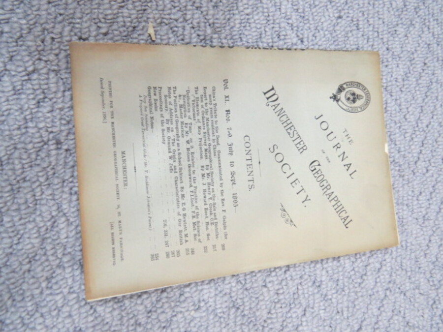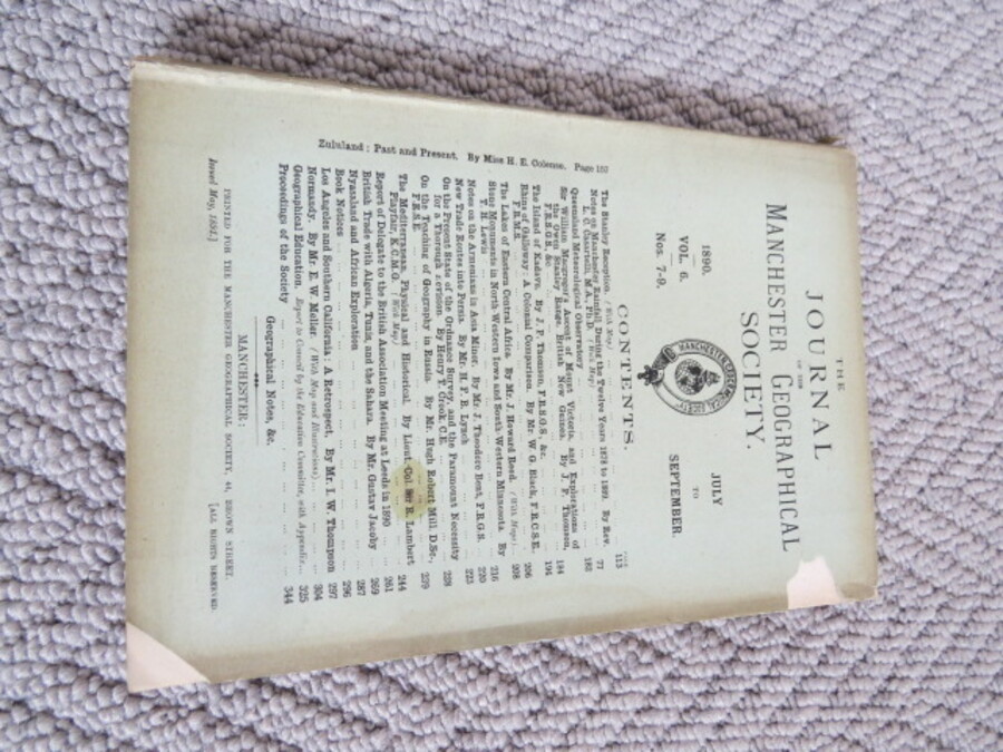 Author Various Title Journal of the Manchester Geographical Society: Vol 7, Nos.10-12. October - December, 1891. Price £5.00 Full Details