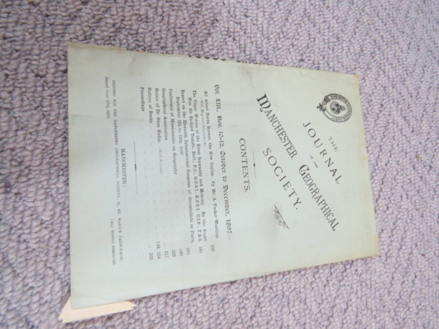 Author Various Title Journal of the Manchester Geographical Society: Vol XIII, Nos. 1-6. January - June, 1897. Price £5.00 Full Details